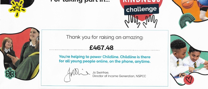 Thank you to the many many children that bought wristbands and contributed to our Kindness Challenge to raise funds for the NSPCC/Childline. We raised an incredible amount and it will all go to help children get the help they need in times of crisis.